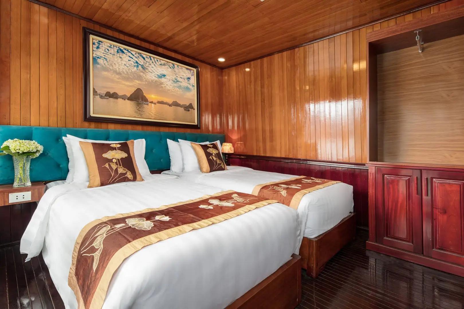 17:00: Return to the Cozy Bay Cruise. Guests can relax, take a shower, or unwind on the sundeck while watching the sunset over Halong Bay.