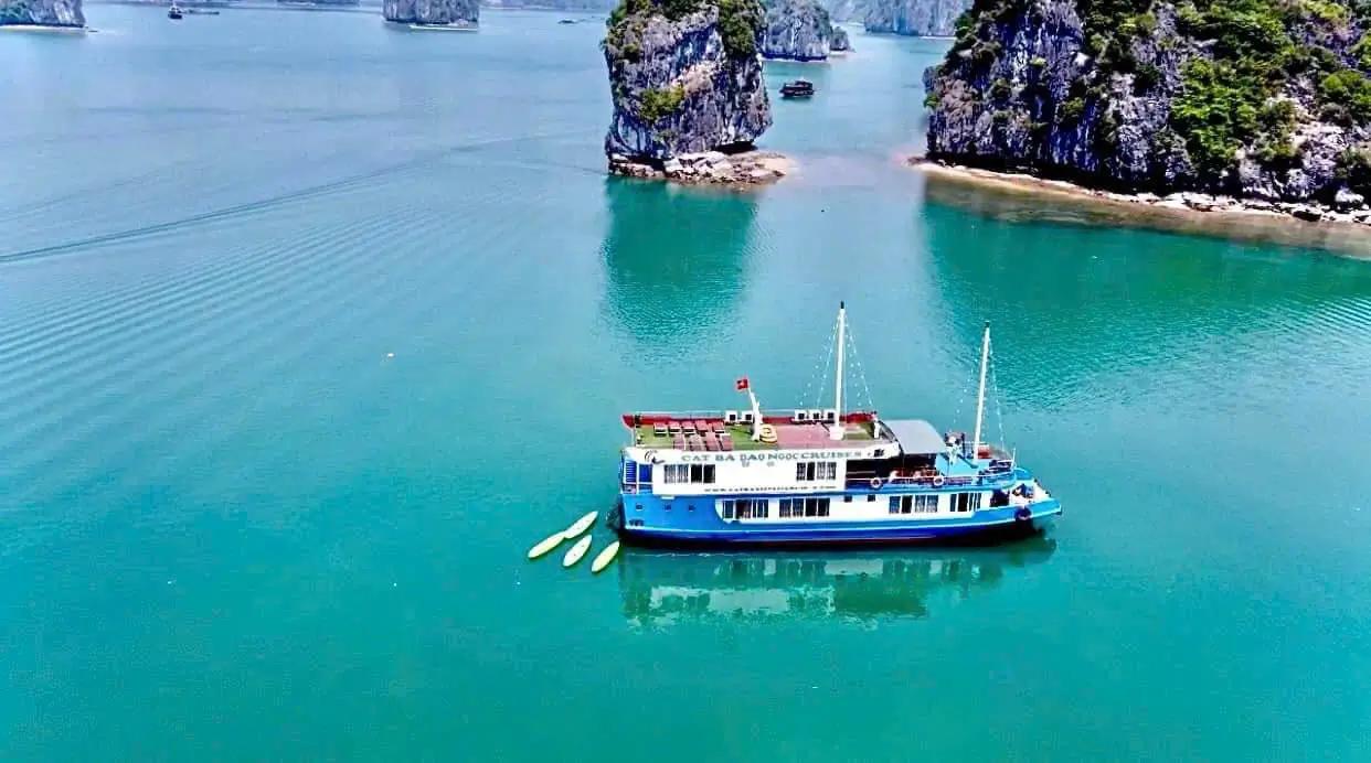 Continuing to the border between Hạ Long Bay and Lan Hạ Bay, where you will enjoy 1.5 hours of kayaking through the Bright Cave and Dark Cave to explore the hidden beauty of the lagoons.